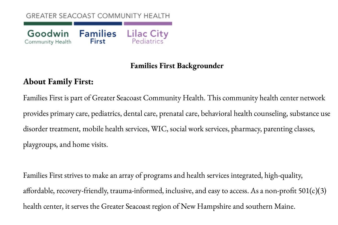 Families First Backgrounder